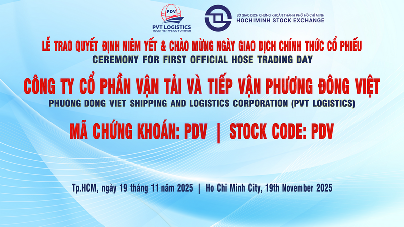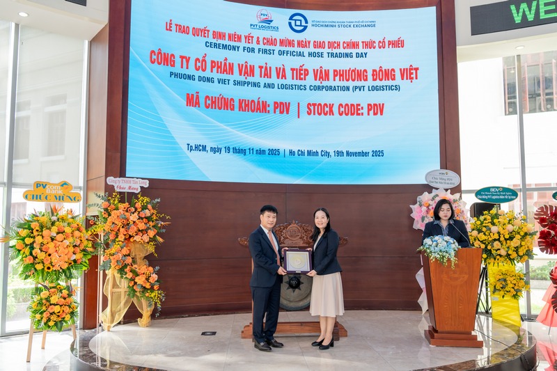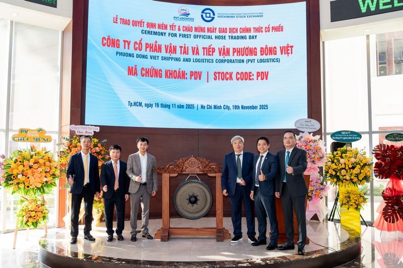 Sáng 19/11/2025, hơn 66 triệu cổ phiếu PDV của PVT Logistics đã chính thức giao dịch trên HoSE, đánh dấu bước ngoặt quan trọng trong hành trình phát triển của doanh nghiệp. Tính tới 10h sáng ngày 19/11, cổ phiếu PVT Logistics đã thêm 500 đồng, lên 12.950 đồng/cổ phiếu, tương ứng vốn hoá đạt hơn 855,9 tỷ đồng.